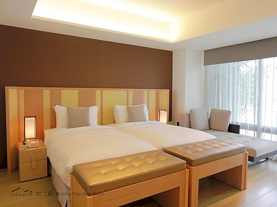 This spacious twin room features 2 single beds and various facilities including a private hot spring bath, flat-screen TV, signature acoustic system and complimentary mini-bar. The hot spring bath is designed without barriers and creates a poetic bathing environment.